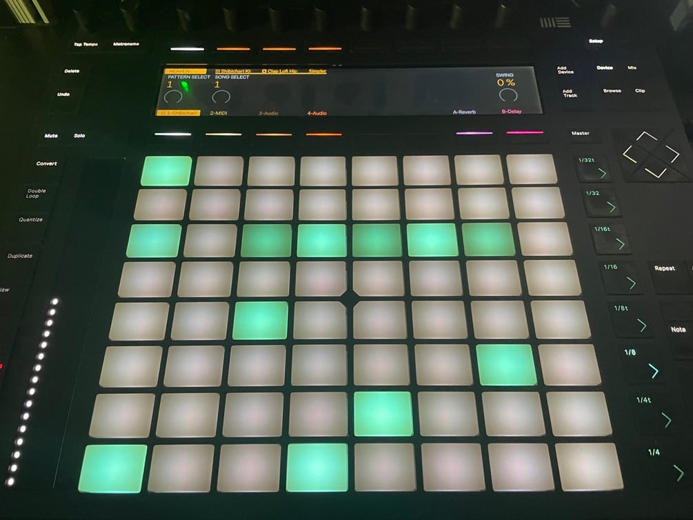 The Layout button enters Song programming mode : each row is a Song (up to 8), you select which pattern to add using the Scene Launch buttons